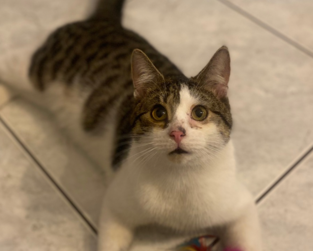 Opis: Maylo jest rocznym, wykastrowanym i niewychodzącym kocurkiem, średniej budowy, waży troszkę podnad 4 kg. Maylo ma ciemny, pręgowany , brązowo-szary grzbiet oraz głowę. Białe łapy z widoczną dużą plamką na prawej przedniej łapce. Biały pyszczek. Na nosku ciemna mała plamka. Maylo ma też czarne usta oraz zapłakane oczy. Znaki szczególne : *plama na prawej przedniej łapce, *zapłakane oczy, *mała czarna plamka na nosku. Maylo w domu reaguje na imię , nie wiemy jak jest na wolności. Maylo to nasza słodka ciapa , boimy się o niego. Nie mamy żadnych informacji.
