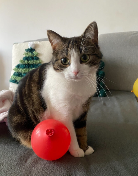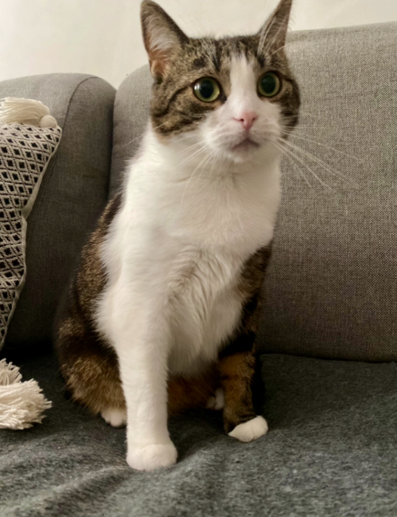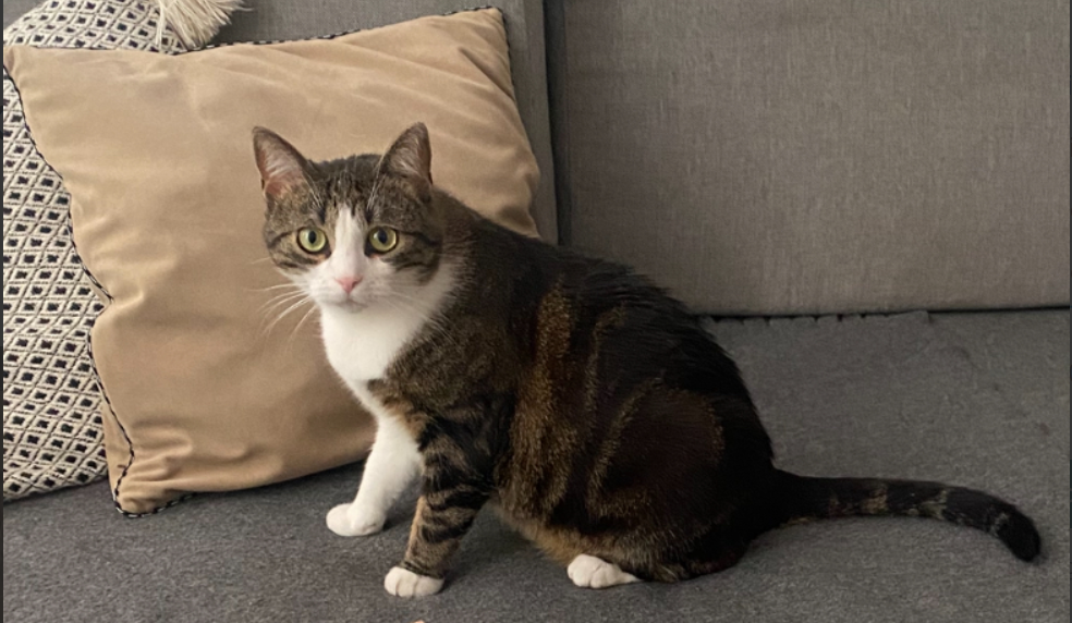 Kicia Biało-pręgowana #burobiała . Ma różowy nosek i charakterystyczne przednie łapki (prawa biała, lewa pręgowana). MA CZIP. Reaguje na imię choć boi się obcych.